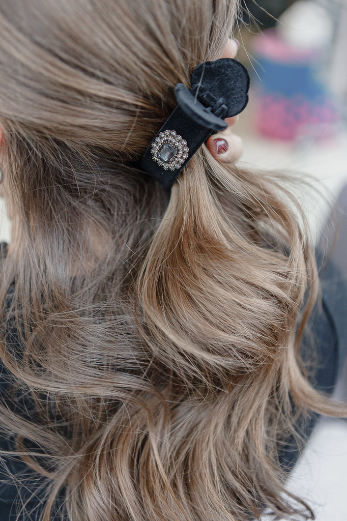 LONG VELVET VINTAGE CRYSTAL CLIP