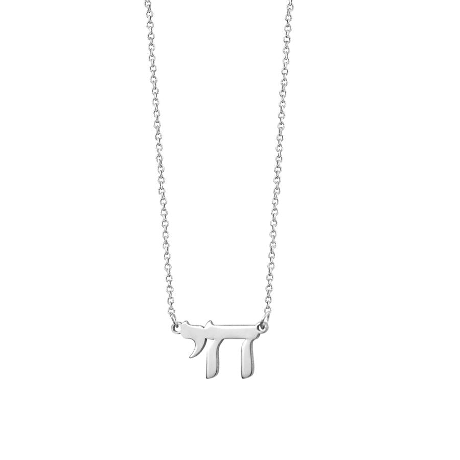 This MINI CHAI NECKLACE features a petite but sturdy sterling silver chain measuring 16 inches in length, with an additional 2-inch extension for adjustable sizing.