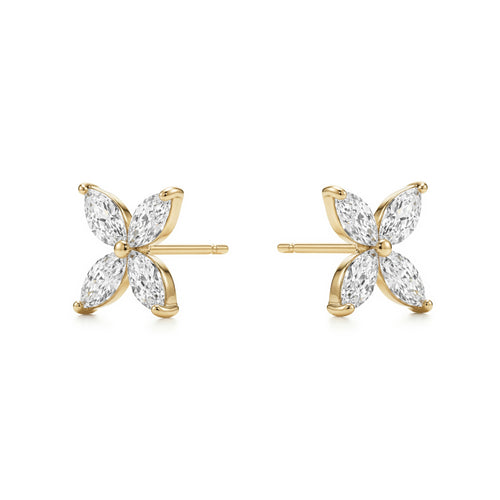 FOUR PETAL CRYSTAL STUD EARRINGS