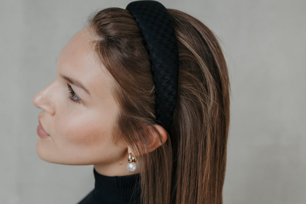 SATIN PUFF CLASSIC HAIRBAND HOUNDSTOOTH