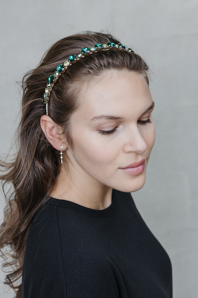 Elevate your look with the exquisite craftsmanship and stunning Swarovski crystal accents of this hand-made hairband. Perfect for any occasion, this one-of-a-kind statement piece is carefully crafted and threaded with precision, taking hours to complete. Experience the luxury and elegance of a crown jewel that is sure to complement any outfit. And with its one-size-fits-most design, it's a versatile and effortless addition to your wardrobe.