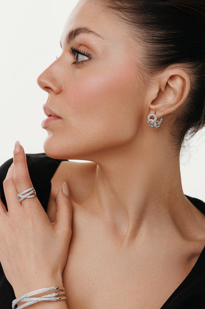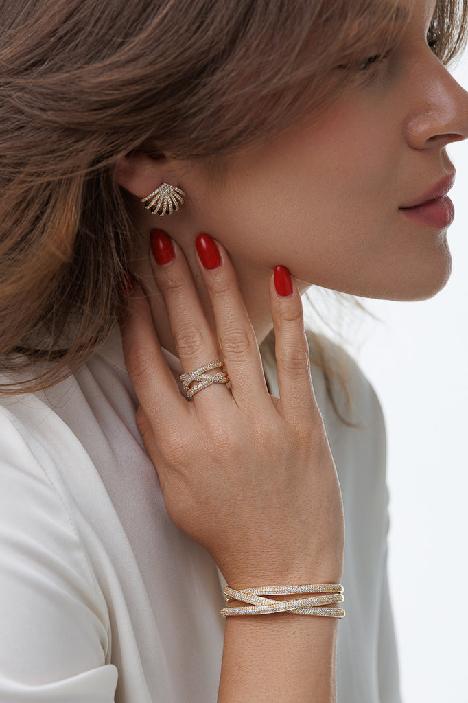 free size The Criss Cross Crystal Ring features a stunning open design and is adorned with sparkling cubic zirconia. With its adjustable fit, it's the perfect accessory for any occasion.