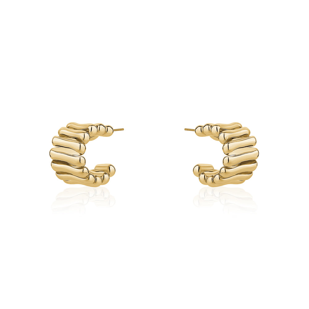 Upgrade your accessories with our stunning half hoop gold plated earrings. At 2 cm in size, they are perfect for adding a bold and eye-catching touch to any outfit. Make a statement and stand out from the crowd with these stylish earrings.