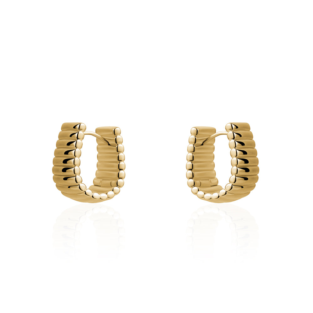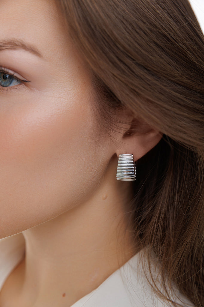 These SMALL STEP HUGGIES earrings add a subtle touch of elegance to any outfit. You can choose between a gold plated or silver plated finish to perfectly complement your personal style. The super comfortable and secure fit ensures you can wear these earrings all day with confidence, making it the perfect accessory for any occasion.