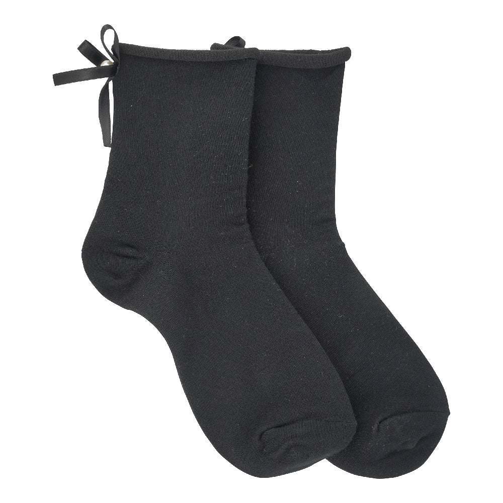 Satin black bow socks