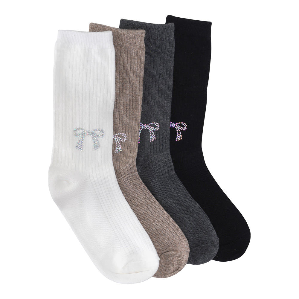 RIBBED BOW CRYSTAL SOCKS - is backordered and will ship as soon as it is back in stock.