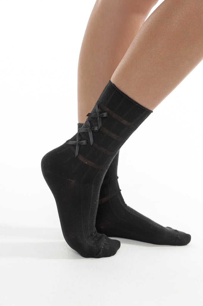 THREE TIER LIGHT SATIN RIBBON SOCKS