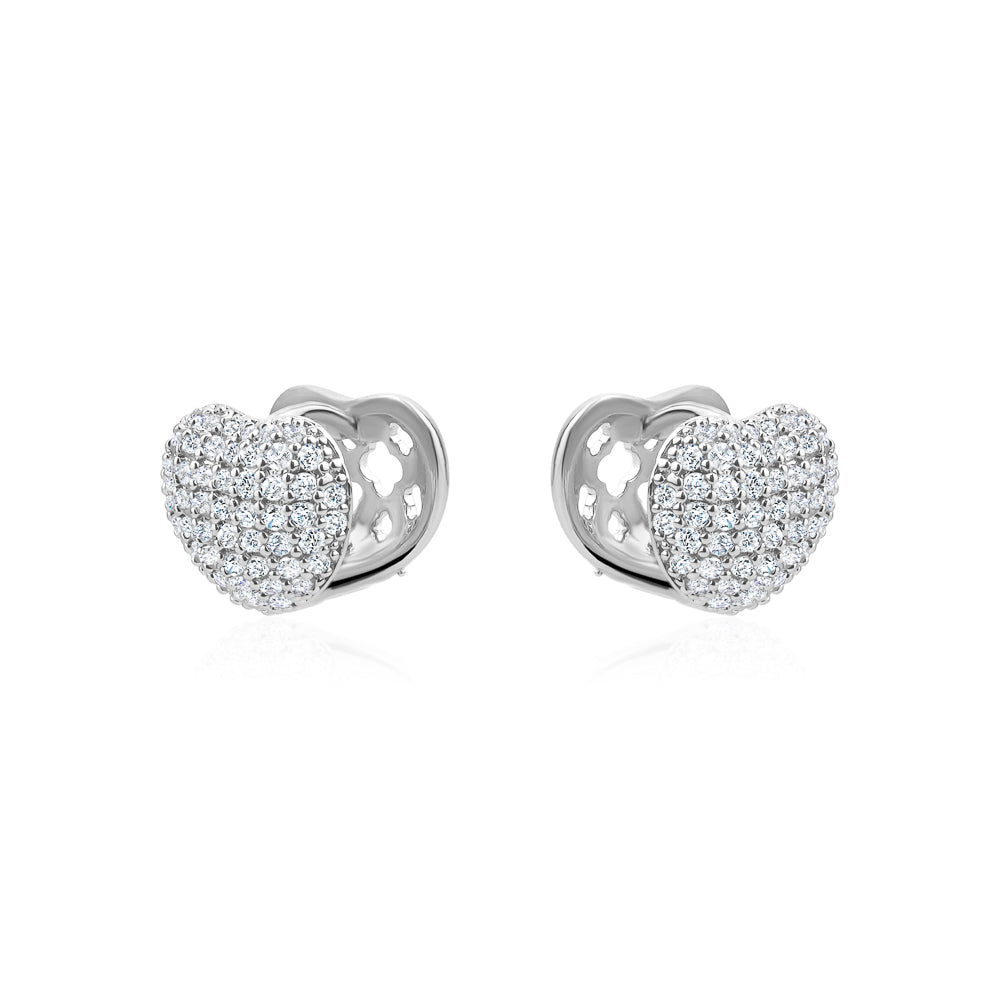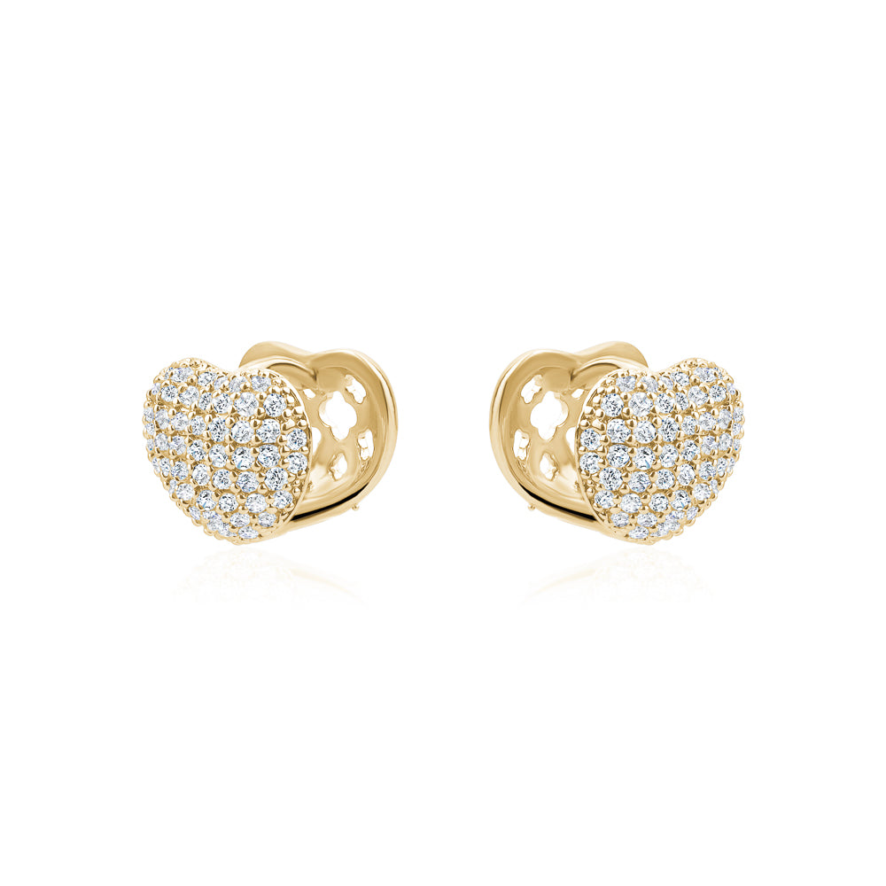 Sparkle and shine! These earrings feature small pave hearts, measuring 3/4 cm. Choose from a gold plated or silver plated finish to add a touch of elegance to any outfit. Perfect for dressing up or wearing every day.