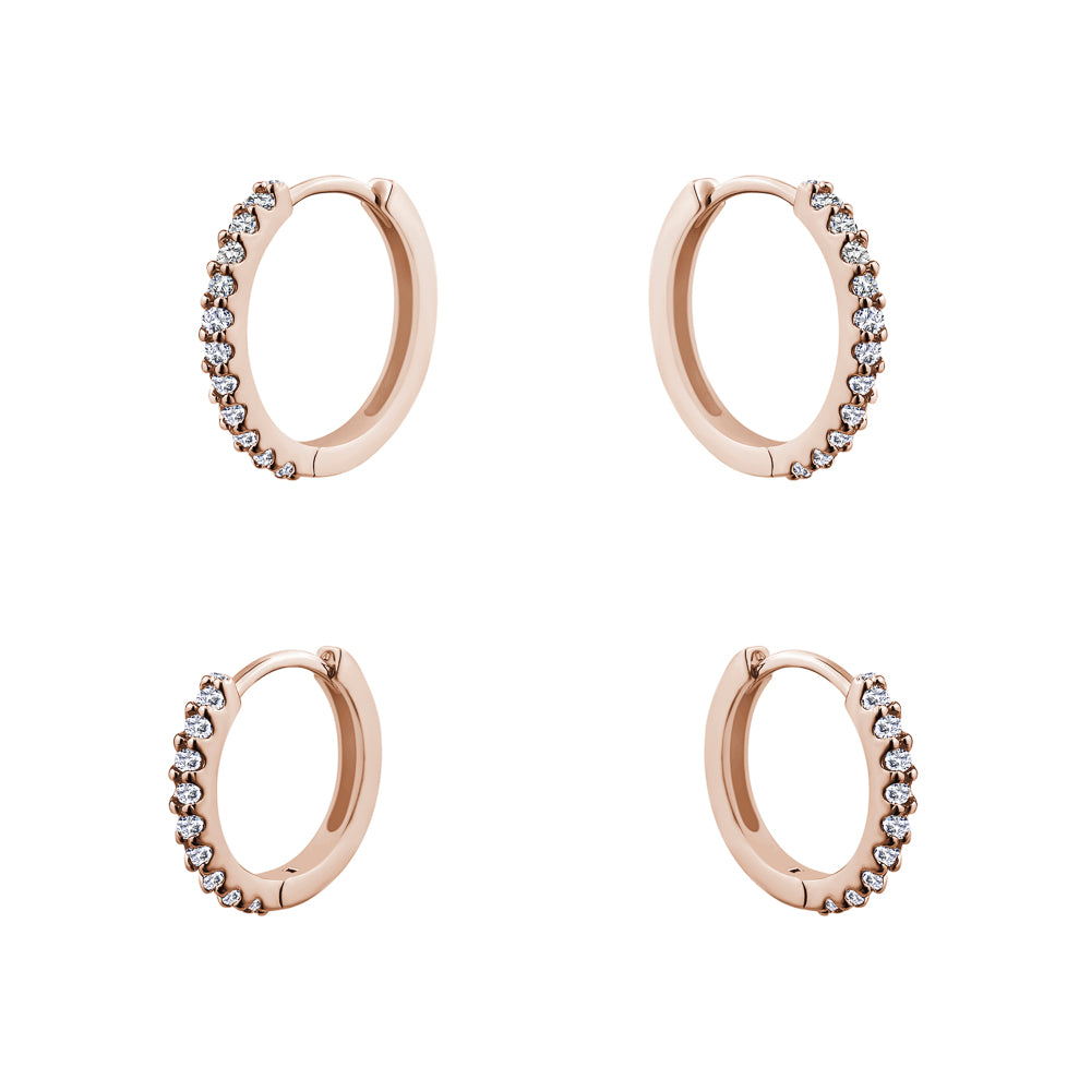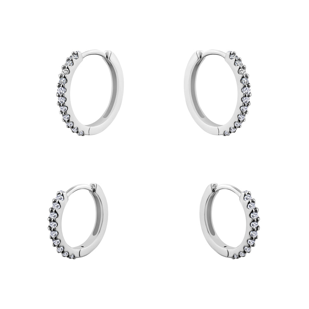 Introducing our SET OF TWO SMALL HUGGIES - the perfect addition to your jewelry collection! Each pair is meticulously crafted with a half cm and 1 cm size, available in both gold and rhodium plated brass finish. Experience luxurious style and effortless elegance with our pave designs. Order your set today!