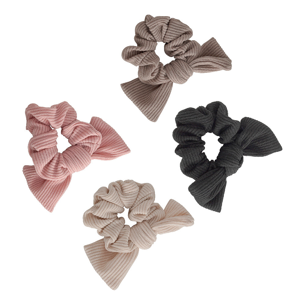 RIBBED BOW SCRUNCHIE BUNDLE OF 4