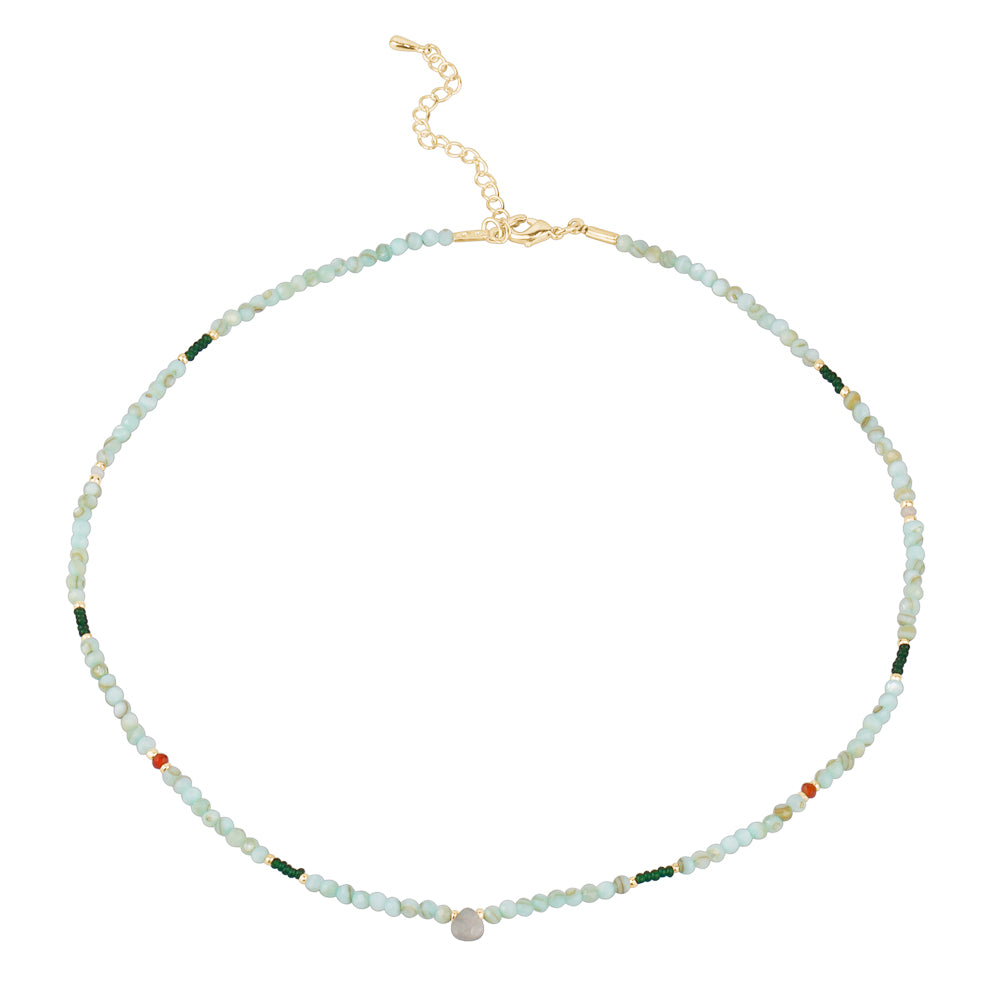 Upgrade your jewelry collection with this stunning and versatile gold bead necklace. At 16 inches, it's the perfect length to accent any outfit. The jade beads add a touch of elegance and natural beauty, making this piece a must-have for any fashion-forward individual. Elevate your style and make a statement with this gorgeous jade necklace.