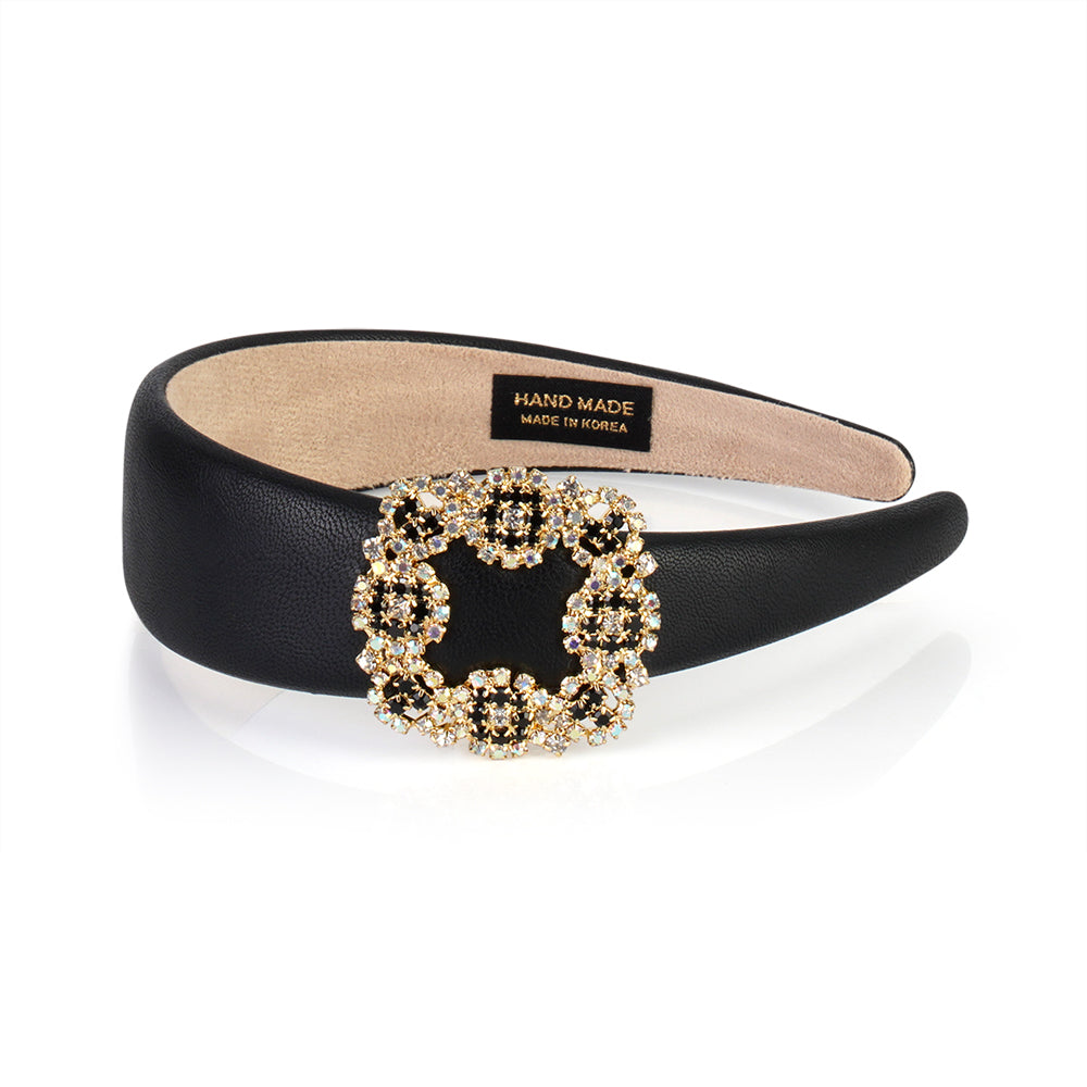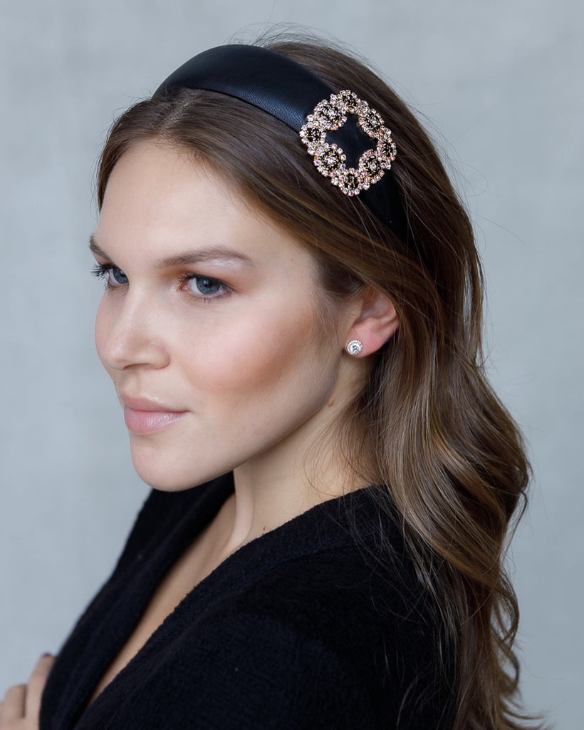 FANCY FLORAL LEATHERETTE CRYSTAL HAIRBAND