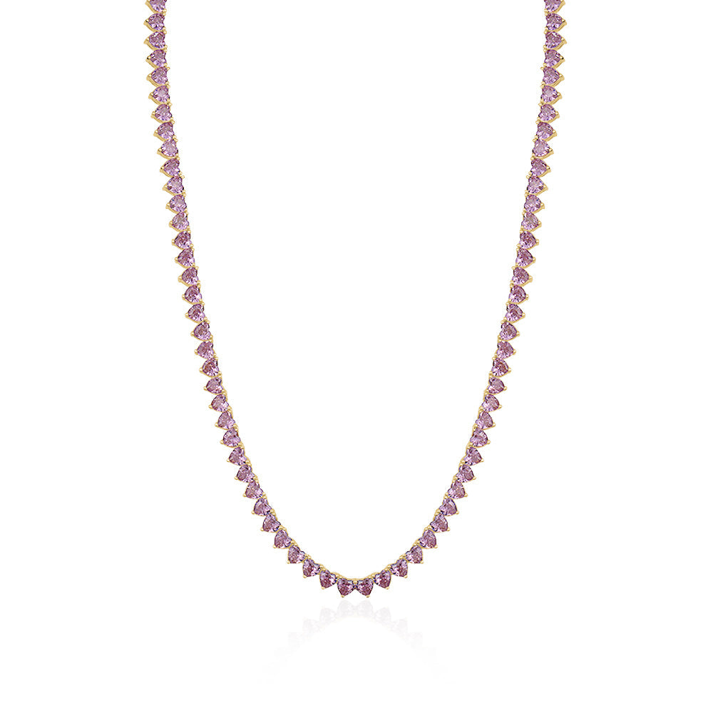 ALL HEARTS TENNIS NECKLACE PINK CRYSTALS