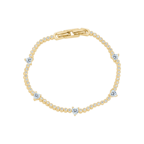 Embodying vintage charm, this mini tennis bracelet exudes elegance with its gold or silver-plated design and sparkling cubic zirconia stones. As a high-quality accessory, it adds a touch of sophistication to any look.