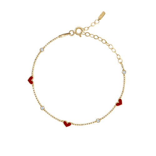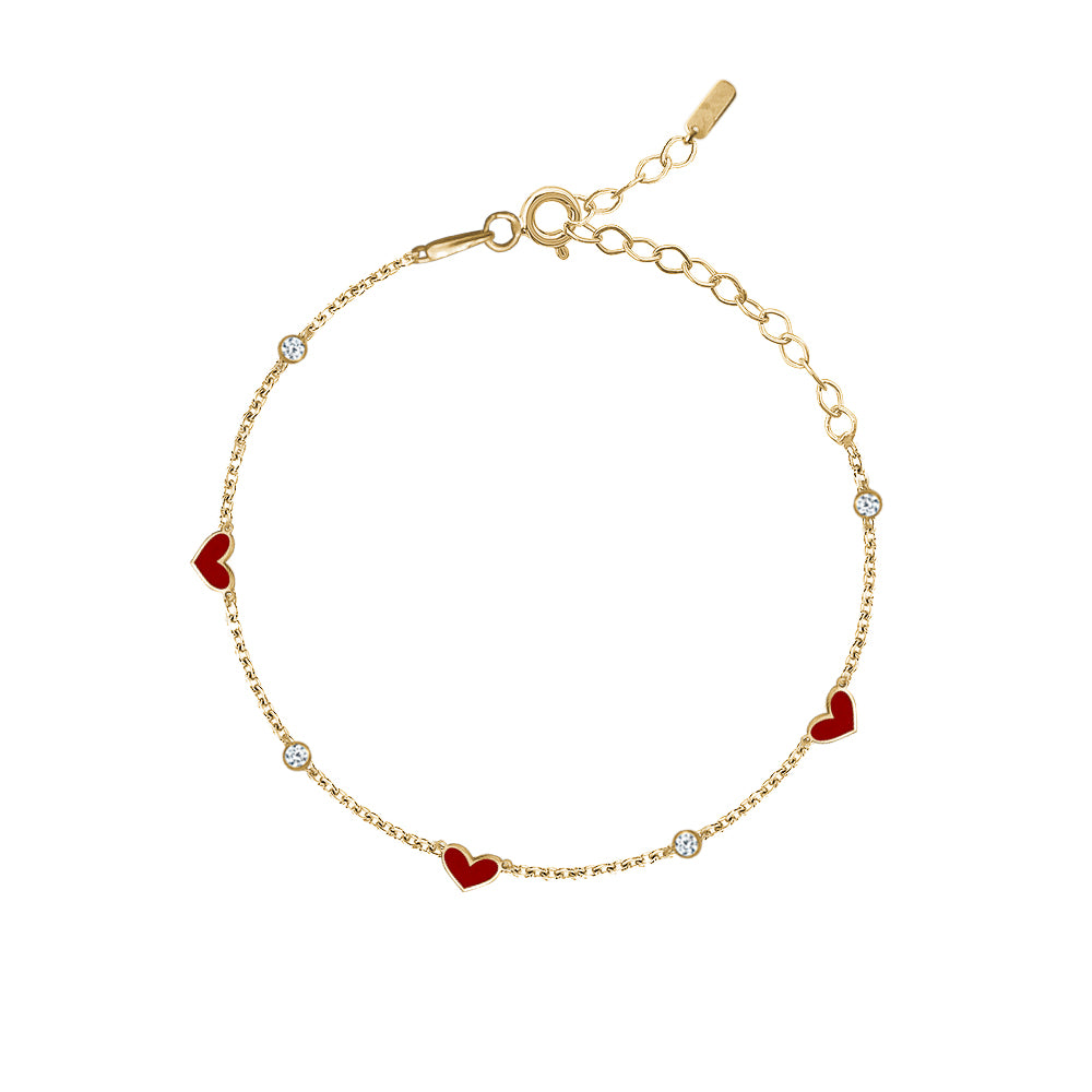 Spread the love with this charming enamel bracelet, hand-painted with vibrant detail and finished in lustrous gold plating. Crafted from 925 sterling silver, it features an adjustable fit from 7 to 8 inches, making it the perfect accessory for any wrist. A playful piece that brings joy to your everyday style.
