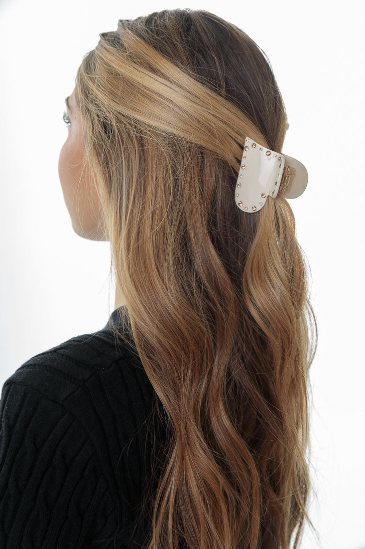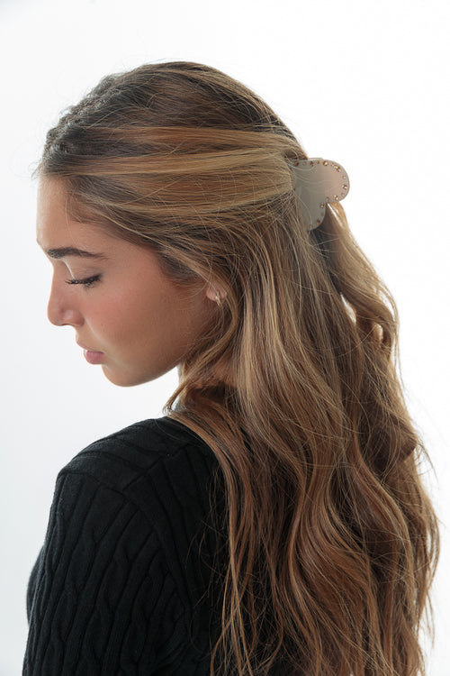 Experience the opulence of our cellulose clips, adorned with smokey yellow crystals measuring 5cm in length.