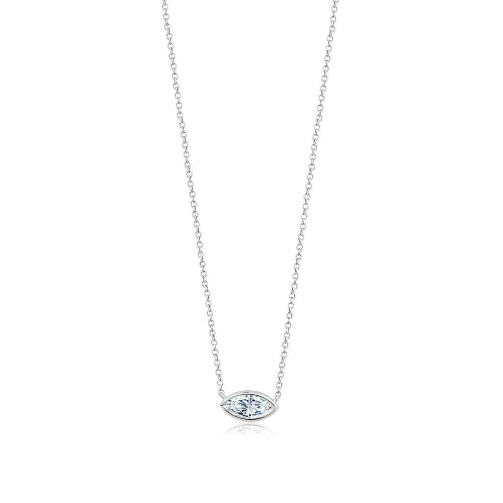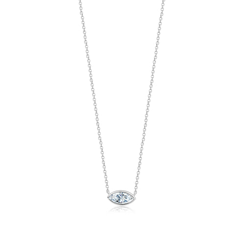 Crafted from sterling silver, this MARQUIS EYE NECKLACE features a dazzling crystal and measures 16 inches in length.